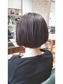 秋色の赤みの入ったブラウンのカラーに!質感補修トリートメントで中間、毛先にケラチンやコラーゲンを配合し、素髪に近づけました。ストールやタートルネックの服を着るこの時期に首元がスッキリするショートボブ!幅広い年代に愛されるスタイルです。