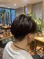 やや前下がりになっていて、前髪おろしてもセンターパートでもキマる流行りのスタイルです!襟足はスッキリ仕上げてます