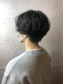 前下がりのハンサムショート。毛先にパーマで動きをだしてセットも楽ちん。ダークトーンでもハイトーンでも似合うショート。