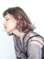 顔周りにレイヤーの入ったミディアムヘアーを内側に入れた3色のデザインカラーで個性的に仕上げました。表面が黒髪で派手になりすぎず、毛を耳にかけたり風でなびいたりした時に見えるデザインカラーがオシャレです。デザインカラーを入れる幅で見え方を調節