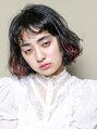 シンプルな黒髪ボブに映える赤のデザインカラーで個性的に仕上げましたデザインカラーは内側・中間から毛先に入れることで主張しすぎず、毛の動きや重なりでヘアスタイルに立体感をくせ毛を生かした柔らかいカールをオーガニックワックスでスタイリング