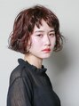 ショートボブをランダムウェーブのパーマで仕上げましたカールアイロンでランダムに巻くと広がりやすい髪質でも、パーマだと自然にコンパクトに収まりますカラーリングはピンクパープルで黄色味を感じさせないしっとりツヤのある仕上がりに