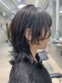 ボブウルフ、ミディアムウルフ、ネイビーカラー