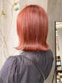 オレンジレッド暖色艶イルミナカラーボブぱっつん切りっぱなし