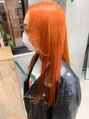 オレンジベージュ、ブリーチオンカラー、ロング、トゥワイス