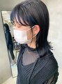 インナーカラー、ネイビーカラー、外ハネボブ、グレージュ