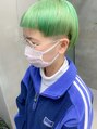 ペールグリーン、刈り上げ女子。ベリーショート、黄緑カラー