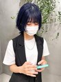 伸ばしかけウルフ簡単スタイリングブルーネイビーカラーボブ