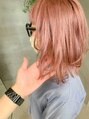薄いピンク、ピンクベージュ、ブリーチ2回、くびれウルフ
