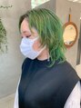 ミントグリーン、オリーブベージュ、ウルフカット、黄緑