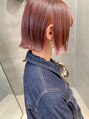 切りっぱなしボブ、外ハネボブ、インナーカラー、ペールピンク