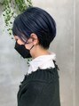 前下がりショート、耳かけショート、ネイビーカラー、ブリーチ