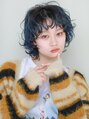 ウルフカット、ネイビーカラー、ブリーチ、オン眉