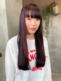 姫カット個性的ロングヘアデザインレッドカラーワインレッド