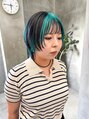 ターコイズ ブルー デザインカラー ハイライト ウルフカット