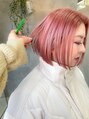 ブリーチカラーダブルカラーミニボブ前下がりボブコーラルピンク