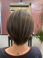 透明感のあるグレージュ系で、涼しげなショートボブに
