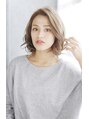 ダブルカラーで引き出す透明感たっぷりのベージュグレーにかきあげた前髪と毛先の外ハネのカールが可愛いボブスタイルです。ニュアンスのカールが可愛い人気のスタイルです。