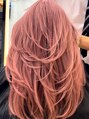 シアーピンクカラー/バタフライカット/海外風レイヤー/髪質改善