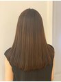 毛先に動きが出しやすいようにプラチナストレートでクセを抑えてあります。柔らかな質感でブローやコテで巻きやすいです。従来の縮毛矯正のストレート感は苦手な方にオススメしたいメニューです。染めて1ヶ月のカラーは色落ちします。