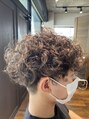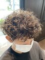 サイドとバックは中を長めに刈り上げたツーブロで全体的に丸くなるようにカット、パーマはスパイラルと腹巻のミックスにしてます。