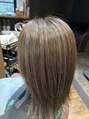 チラホラある白髪が気になるので、ぼかすために細かいハイライトをいれてギャルっぽくならないように色合いをナチュラルにしています
