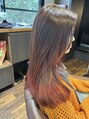 バックはレイヤーなしで、サイドはレイヤーが入ってるスタイルに毛先だけブリーチ、オンカラーはレッド系で!顔まわりのレイヤー部分かわいいですよ。