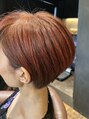 8Lvオレンジ×レッド1:1の可愛い暖色系カラーです。女性らしい丸味を出したショート耳にかけた時後ろから髪が出ない設定でカットしています。