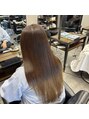 トステア水素トリートメント入り髪質改善矯正をしています。トステアトリートメントと矯正の相性がかなり良く、毛先にブリーチが入られているお客様ですが、ノンアイロンでここまで仕上げられます!