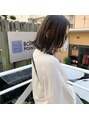アゴ下の外ハネボブにオリーブ!量感減らして軽めな質感のボブと赤み抑えるオリーブで透明感を!最初暗めに入れる事で色持ちも◎26ミリのアイロンで外ハネ、オイル仕上げ!カットカラーで雰囲気変えましょ!何でもご相談下さい!