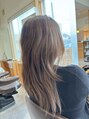 お客様の髪質に合わせた似合わせカラーで柔らかく透明感のあるシナモンベージュに仕上げました。カットはかき上げた時に流れる動きが出しやすいようにレイヤーを入れています。