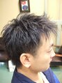 サイドはツーブロックでタイト感を出し後頭部は丸みが出るようにグラデーションカット。襟足は短めにカットする。全体に動きが出るようにスライドカット。