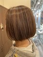 ハイライトが入ったボブスタイルです。立体感がでてぺたっとしやすい方オススメです。白髪が気になるお客様にもとてもおすすめです!