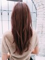 ふんわりと柔らかい質感に、ナチュラルなピンクブラウンというモテヘアーです!ロングでありながら、重た過ぎず動きも出せるようなスタイルになっています。かわいいスタイルや、暖色系の似合う方にオススメです!