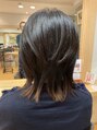 重めのバングとフェースラインの独立したサイドがかわいらしさのアクセントになっています。襟足にはインナーカラーを施して、スタイルの立体感を演出しております。