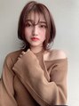 ほんのりオレンジ、暖色系の甘めカラーでかわいさのあるミディアム☆シースルーバングで透け感を作ることでお肌馴染みもばっちり。
