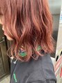 ブリーチを数回繰り返している髪に、オレンジ色と赤色を混ぜてON♪赤でもオレンジでもない、可愛いカシスカラーの出来上がりです!派手になりすぎる色ではないので挑戦しやすくオススメですよ♪