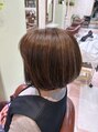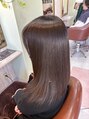 カラー『髪質改善カラーエステ』ダメージ物質を無害化して必要成分をしっかり補給する髪質改善白髪染めです。カットは軽くなりすぎないレイヤースタイル。