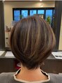 カラーと髪質改善トリートメントでツヤツヤなボブスタイルです。ボブはツヤが際立つスタイルなので暖色系のカラー相性バッチリですよ!