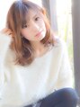 カラーはオレンジ系のグラデーション。全体に大きめカールで、ゆるふわガーリー♪可愛らしい雰囲気に仕上げました。