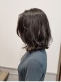 ミディアムの切りっぱなし風ボブに外巻きウエーブをデジタルパーマでかけてあります!手ぐしセットでお手入れ楽チン!