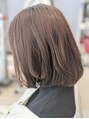ワンカールで決まるまるみボブスタイルに透明感たっぷりのベージュブラウンのカラーで可愛いスタイルです!