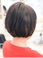 襟足をすっきりとさせた前下がりショートボブスタイル☆透明感のあるブラウン系のカラーでお顔がパッと明るくなりますよ(^^)またおさまりもいいので日々のスタイリングも簡単♪