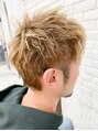 オレンジ味の強くないゴールド系のカラーに束感のあるメンズショートスタイル!10代20代におすすめな三代目風のワイルドなモテスタイルです!