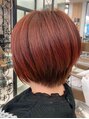 最近人気のレッド系カラー☆秋冬は深みのあるお色が人気です(*^^*)襟足をすっきりとさせまとまりのいいショートスタイルで朝のセットも楽チンに!