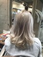 ハイブリーチからのミルクティホワイト☆白っぽくするため少しアッシュとパールを入れました☆ダブルカラー、グラテーションカラー、アンニュイカール、ベビーバング
