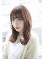 大人かわいいゆるふわカールのフェザーセミディアムスタイルです☆カラーはピンクベージュです☆トリートメントとカラーでツヤ感がでますよ☆目尻ぎりぎりの流し前髪で大人っぽさを☆似合わせカット☆ノームコア☆ランダムカール