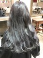 赤味を最小限に抑えるために、ネイビーとラベンダーをミックスしたカラー☆ブリーチをしてからのカラーになります☆