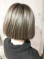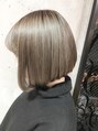 一度ブリーチして透明感のあるミルクティーカラーのタンバルモリボブ☆少し前下がりなのがポイントです☆
