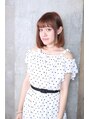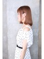 大人かわいいナチュラルボブの毛先ワンカールスタイルです☆カラーはブリーチして透明感をだしたピーチミルクティです☆透明感出したい人にはおすすめですよ☆前髪も透け感をだすと軽いイメージにみえます☆